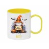 Veselý plastový hrnek s motivem trpaslíka v kouzelnickém klobouku a nápisem „Happy Halloween“. Perfektní personalizovaný dárek pro děti na oslavu Halloweenu.